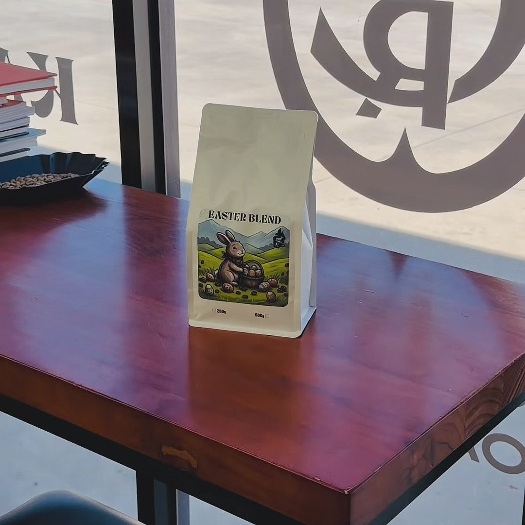 Roasted here in Wendouree, our Easter Blend brings together high-grade pulped natural Brazil and a natural Ethiopia Sidama, roasted on the lighter side of medium to preserve the terroir.