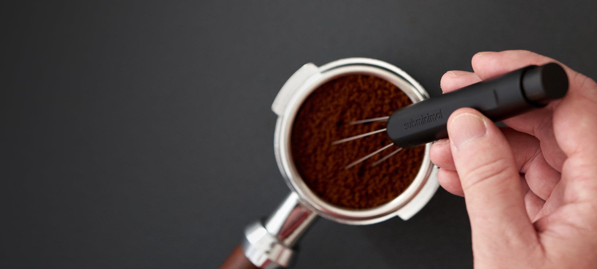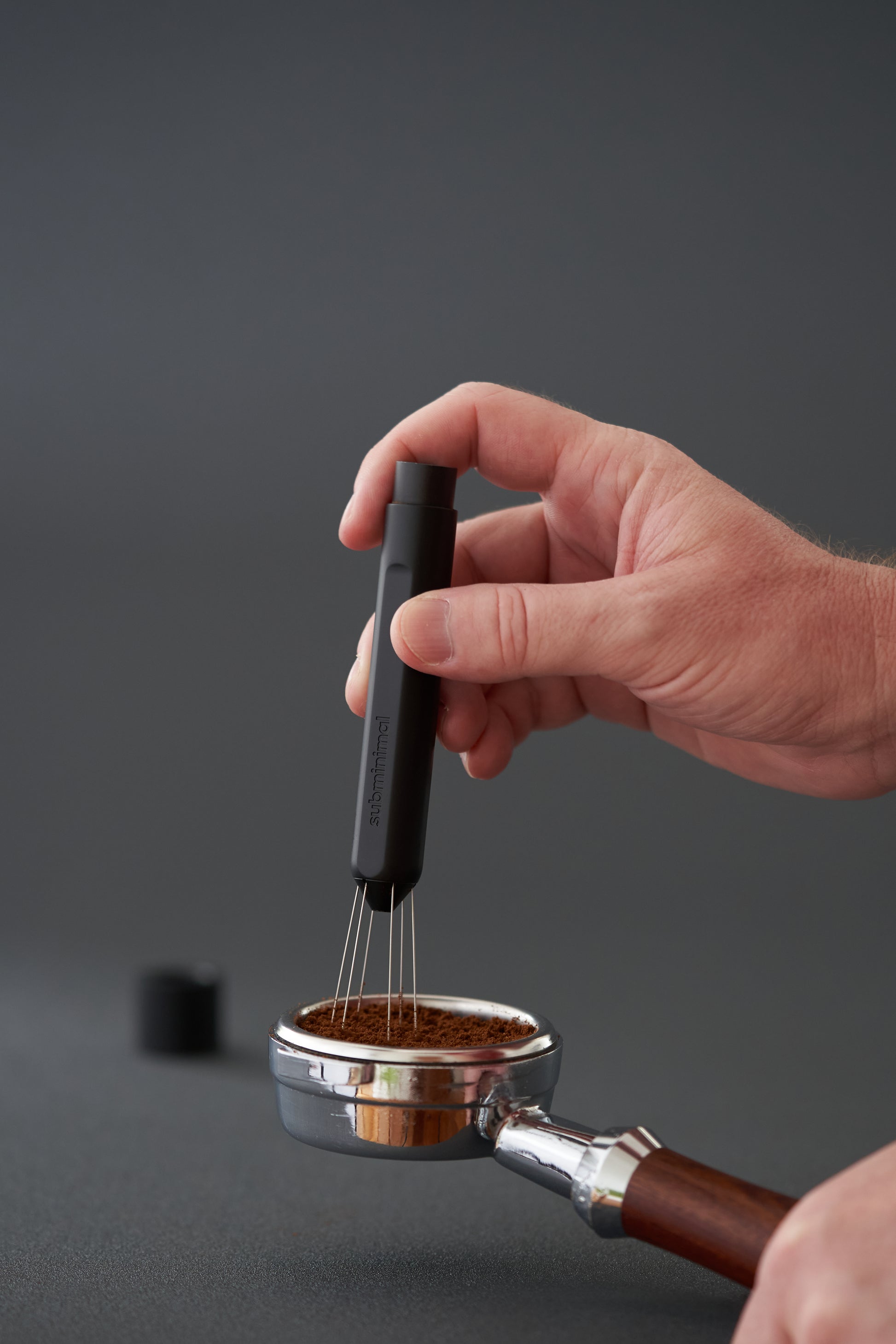 The Flick espresso distribution tool (WDT) is intuitive, fun to use, and safe, thanks to its retractable needles. One click pops the needles out when you need them, and a flick of the wrist sends them right back in.