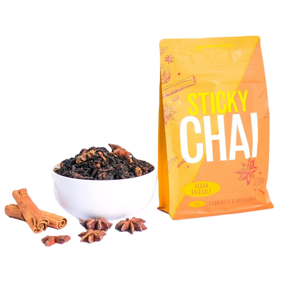 The same exquisite blend as Grounded Plesures 7 Spice Chai Powder — now in a sticky brewable form.