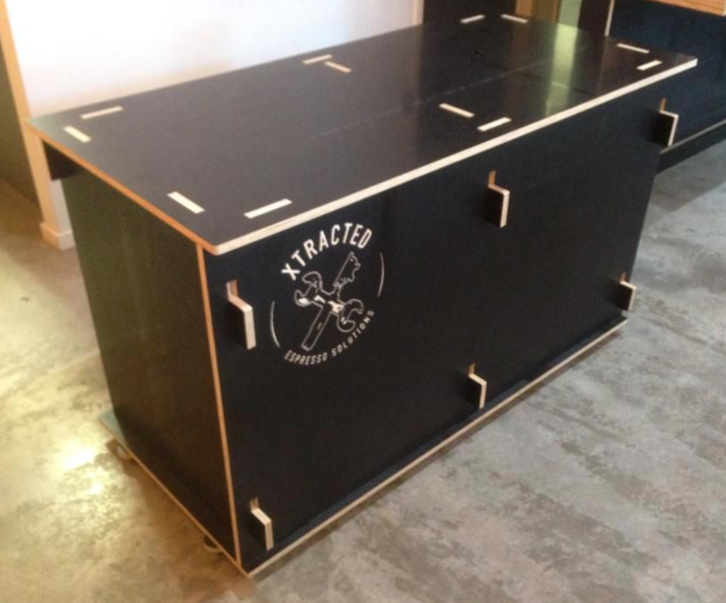 The package includes a 1500mm long black modular extremely strong flat packable wooden coffee cart (wheels can be added for an extra cost).